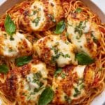 This One-Pot Chicken Parmesan Pasta is a quick and delicious meal combining tender, seasoned chicken with perfectly cooked penne pasta in a rich marinara sauce. Topped with melted mozzarella and Parmesan cheese and garnished with fresh basil, it’s a comforting, easy-to-make dish perfect for busy weeknights.