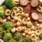 This One Pot Orecchiette with Sausage and Broccoli is a hearty and flavorful Italian-inspired dish that combines tender orecchiette pasta with sweet Italian sausage, fresh broccoli, and nutritious chickpeas. Simmered in fragrant herbs and vegetable or chicken broth, the pasta absorbs the savory flavors while the greens add a fresh, vibrant touch. Finished with parmesan cheese and fresh herbs, this meal is perfect for a quick and satisfying weeknight dinner.