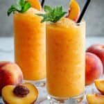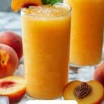 Absolutely! Frozen peaches can be a convenient alternative when fresh peaches aren’t in season. Just thaw them slightly before blending for the best texture and flavor.