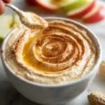 This creamy and healthy Peanut Butter Apple Dip combines Greek yogurt, peanut butter, and a touch of honey with warm cinnamon and vanilla for an easy, delicious snack perfect for apple slices or other fresh fruits.