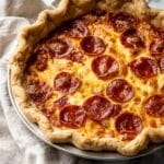 This Pepperoni Pizza Quiche is a delicious blend of a classic quiche and your favorite pizza flavors. Featuring a buttery pie crust filled with eggs, creamy ricotta, zesty pizza sauce, pepperoni, and gooey Italian blend cheese, it’s perfect for breakfast, brunch, or a comforting meal any time of day.