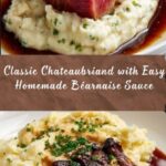 This classic Chateaubriand recipe features a perfectly roasted center-cut beef tenderloin, seared to a golden crust and complemented by a rich, creamy béarnaise sauce. Ideal for an elegant dinner, this dish balances tender meat with the fresh herbaceous flavor of tarragon, making it a timeless favorite.