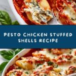 This delicious Pesto Chicken Stuffed Shells recipe combines tender jumbo pasta shells filled with a flavorful mixture of shredded chicken, ricotta, mozzarella, Parmesan, and basil pesto. Baked to bubbly perfection with marinara sauce and topped with fresh basil, it’s a comforting Italian-American main course that’s perfect for family dinners or special occasions.