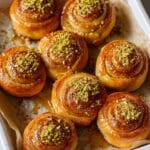 Delight in these Pistachio Honey Baklava Rolls, a Middle Eastern-inspired dessert featuring crisp phyllo dough wrapped around a sweet cinnamon-pistachio filling, baked to golden perfection, and soaked in a fragrant honey syrup. Perfectly crunchy and sweet, these rolls offer a traditional flavor with an easy-to-make rolled presentation.