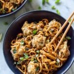 These Potsticker Noodle Bowls are a quick and flavorful dish combining tender ground chicken, lo mein noodles, and a savory sauce infused with garlic, ginger, and soy. Enhanced with crisp coleslaw mix and a hint of spice from sriracha, this recipe offers a delicious, easy-to-make meal perfect for busy weeknights.