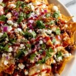 Absolutely! Simply substitute the pulled chicken with black beans, sautéed mushrooms, or roasted vegetables. The sauce and chips are rich enough to stand on their own, so you won’t miss the meat at all.
