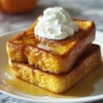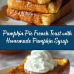 A cozy and delicious fall breakfast featuring thick-cut brioche soaked in a pumpkin-spiced custard and cooked to golden perfection, served with a warm homemade pumpkin syrup made from maple syrup and pumpkin puree. This Pumpkin Pie French Toast with Homemade Pumpkin Syrup combines seasonal flavors and comforting textures for a perfect autumn morning treat.