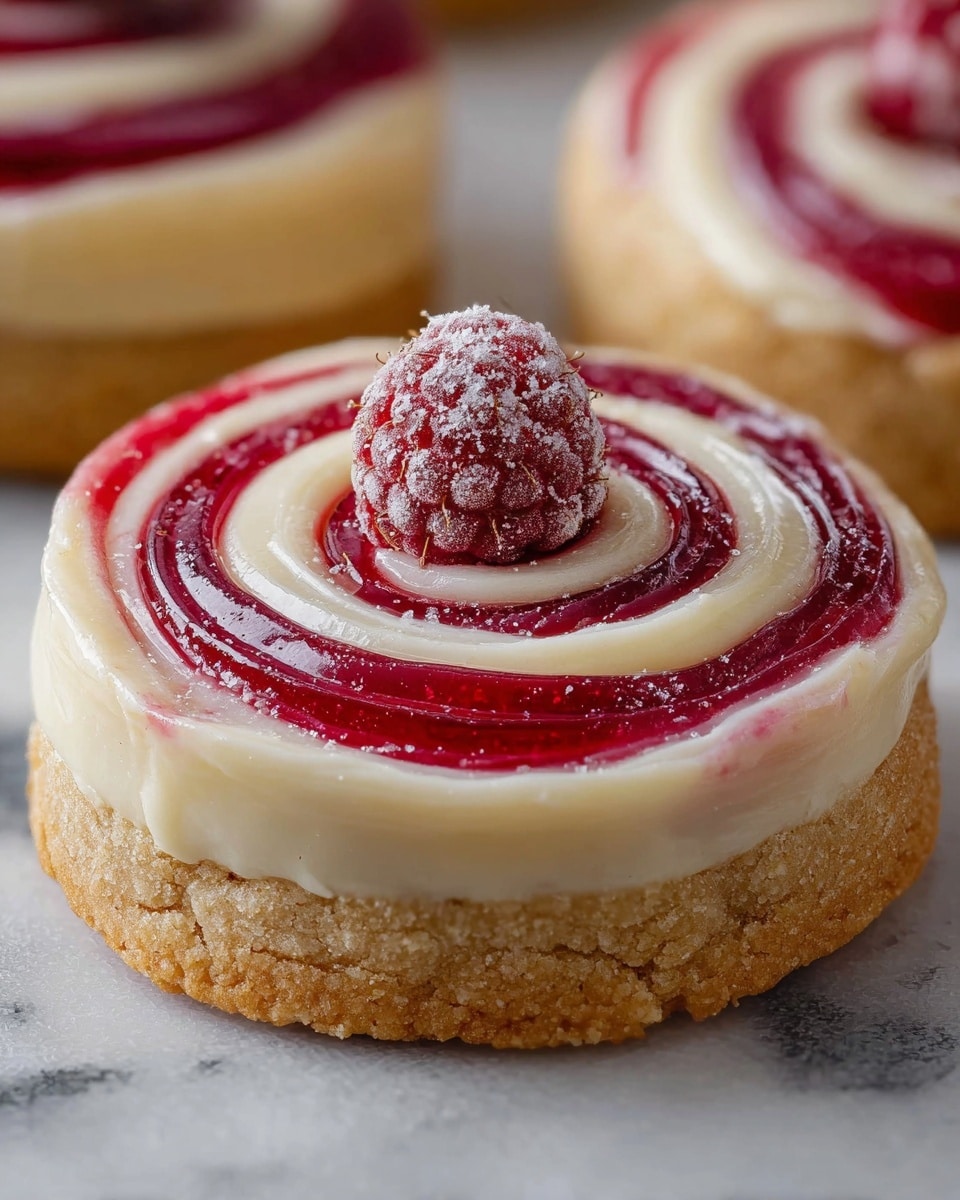 Enhance your Raspberry Cheesecake Cookie Swirls by sprinkling a light dusting of powdered sugar or adding fresh raspberries on top right before serving. This adds a touch of elegance and a fresh, fruity accent that complements the creamy filling beautifully.