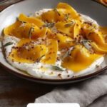 This delightful recipe features Red Kuri Squash and Goat’s Cheese Manti, a tender and flavorful dumpling with a roasted squash and creamy goat cheese filling. The dough is handmade, boiled until tender, then pan-fried for a golden, crispy finish. Garnished with fresh herbs, this dish combines comforting textures and rich flavors, perfect as an appetizer or main course.