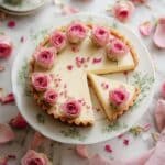Edible rose petals not only echo the tart’s rose flavor, but they also add an elegant, romantic touch that makes each slice visually stunning. Fresh berries like raspberries or blueberries introduce a lively contrast in both flavor and appearance.
