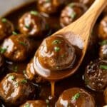 Reheat leftover meatballs gently on the stove over low heat to avoid drying out the beef. A splash of extra beef broth can help loosen the gravy if it has thickened too much. Alternatively, microwave in short bursts, stirring between intervals, until heated through and steaming.
