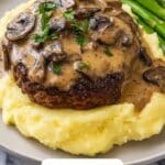 This Salisbury Steak with Mushroom Gravy recipe features flavorful beef patties seasoned with a blend of herbs and condiments, seared to perfection, and served smothered in a rich, homemade mushroom gravy. It’s a comforting, classic American dish perfect for a hearty weeknight dinner.