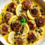This Saucy Chicken Piccata Meatballs recipe features tender ground chicken meatballs infused with garlic, parmesan, and fresh herbs, seared to perfection and simmered in a tangy lemon-caper butter sauce. Ready in 45 minutes, these flavorful meatballs make a delightful meal, perfect for serving over pasta, rice, or alongside steamed vegetables.
