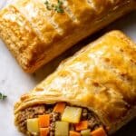 Refrigerated pie crust is convenient and yields a tender crust, but if you want extra flakiness and puff, puff pastry is a fantastic alternative. Homemade savory pastry dough also works well if you want to customize the flavor and texture.
