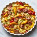 This Sheet Pan Sausage and Pierogies recipe is a quick, flavorful, and hearty meal that combines crispy roasted pierogies with savory sausage and colorful bell peppers. All ingredients are roasted together on a single pan for easy cleanup and a deliciously balanced dish perfect for weeknight dinners.