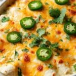 Shrimp Enchiladas are a delicious and creamy Mexican-inspired dish featuring seasoned shrimp wrapped in flour tortillas, baked in tangy green enchilada sauce, and topped with melted Monterey Jack and cheddar cheese. This recipe is perfect for a comforting dinner that delights your taste buds with bold flavors and a zesty lime-cilantro finish.