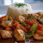 Sizzling Garlic Chicken Stir-Fry with Peppers & Steamed Rice Recipe
