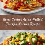 These Slow Cooker Asian Pulled Chicken Nachos combine tender, flavorful pulled chicken simmered in a tangy, slightly sweet Asian-inspired sauce with crunchy tortilla chips, pickled cucumbers, melted Monterey Jack cheese, and fresh garnishes. Perfect for a crowd-pleasing appetizer or casual meal, this recipe is easy to prepare with minimal hands-on time thanks to the slow cooker.