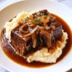 This Slow Cooker French Onion Pot Roast Recipe freezes wonderfully. Portion the meat and sauce into freezer-safe containers or zip-top bags, removing as much air as possible. It will keep well for up to 3 months, so you can enjoy the comforting taste anytime you want with just a little advance prep.