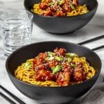 This Slow Cooker Honey Garlic Chicken Noodles recipe offers a flavorful and convenient meal characterized by tender shredded chicken thighs simmered in a savory honey garlic sauce. Combined with fresh lo mein noodles and garnished with scallions and sesame seeds, it makes a comforting and effortless dinner for six.
