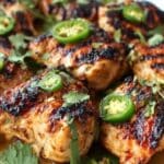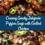 This Smoky Jalapeño Popper Soup with Grilled Chicken is a creamy, spicy, and smoky delight that combines the heat of fresh jalapeños with the richness of cream cheese and cheddar. Perfect for a comforting meal, it features tender grilled chicken breasts seasoned with garlic and smoked paprika, wrapped in a hearty soup base enhanced by bacon and garnished with fresh cilantro for a fresh note.