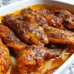 These Smothered Turkey Wings are seasoned with a flavorful blend of poultry, Creole, and Cajun spices, slow-baked to tender perfection, and served with a rich homemade pan gravy. This classic Southern comfort dish features juicy turkey wings smothered in a savory onion and bell pepper gravy that pairs wonderfully with rice or your favorite side.