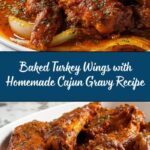 - Smother Wings: Pour the prepared gravy evenly over the turkey wings in the roasting pan. Cover with foil and return to the oven to bake an additional 30 to 40 minutes, or until the wings are fork tender and fully cooked through.