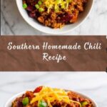 Southern Homemade Chili Recipe pairs exceptionally well with classic cornbread — warm, crumbly, and slightly sweet. If you want to keep things light, a simple green salad with a tangy vinaigrette balances the rich flavors. For a hearty feast, serve alongside buttery garlic bread or crispy tortilla chips perfect for scooping.