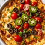 - Sliced black olives (1/2 cup): Give a subtle briny touch that complements the rich cheeses perfectly.