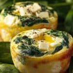 These Spinach & Feta Egg Muffins are a quick and delicious high-protein breakfast or snack option. Packed with fresh spinach, tangy feta cheese, and a hint of garlic and onion powder, these muffins are baked to perfection for a fluffy, savory bite-sized treat. Perfect for meal prepping and customization with optional add-ins like bell peppers, tomatoes, or bacon.