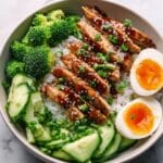 Adding fresh toppings gives these bowls a vibrant lift. Think crisp cucumber slices, shredded carrots, sliced green onions, chopped cilantro, or creamy avocado slices. These bright, fresh accents complement the rich sticky chicken sauce and add layers of texture.