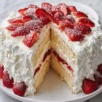 9. Decorate & Serve: Optionally, decorate the top of the cake with fresh sliced strawberries for added color and flavor before serving.