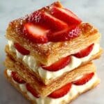 While the strawberries are resting, beat your softened cream cheese with powdered sugar and vanilla extract until the mixture is luxuriously smooth. This creamy filling will add a lovely tang and sweetness that balances the berries and puff pastry perfectly. Make sure it’s well blended without lumps for that silky texture in your Danish delights.