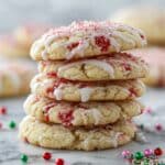 Delight in these Strawberry Pop Tart Cookies that combine the nostalgic flavors of classic pop tarts with the texture of a soft cookie. Filled with strawberry jam and studded with freeze-dried strawberries and white chocolate chips, these cookies are topped with a sweet pink glaze and optional sprinkles, making them perfect for a fun and delicious treat.