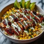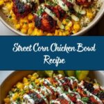 This Street Corn Chicken Bowl is a flavorful and easy-to-make meal combining juicy, seasoned chicken with sweet street-style corn, creamy avocado, and zesty toppings over a bed of fluffy rice and black beans. Perfect for a hearty lunch or dinner, it brings together vibrant Mexican-inspired flavors in one delicious bowl.