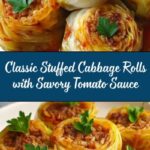 Classic stuffed cabbage rolls filled with a savory mixture of ground beef, rice, and aromatic herbs, simmered gently in a rich tomato sauce. This comforting dish is perfect for a family meal and pairs wonderfully with crusty bread or mashed potatoes.