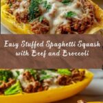 For an elegant twist, serve the Stuffed Spaghetti Squash with Ground Beef, Broccoli, and Mozzarella Recipe on individual plates with a drizzle of balsamic glaze. Or create a family-style presentation by placing the stuffed halves on a large platter garnished with fresh herbs and lemon wedges. It’s both rustic and inviting, perfect for sharing.
