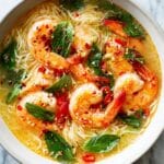 A vibrant and flavorful Thai Shrimp Coconut Noodle Soup that combines tender shrimp, creamy coconut milk, and fragrant lemongrass with red curry paste for a comforting, spicy broth. Perfect for a quick 30-minute meal that brings authentic Thai flavors to your table.