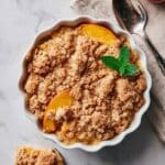 Absolutely! Fresh, ripe peaches work beautifully in this recipe, especially when they’re in season. Just remember to peel and slice them, then reduce the baking time slightly to prevent overcooking.