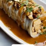 A flavorful and satisfying Tofu Skin Roll recipe featuring a savory vegetable filling wrapped in delicate tofu skin, pan-fried to a golden brown, and simmered in a fragrant spiced broth. Perfect as an appetizer or main dish, garnished with fresh cilantro for a fresh finish.