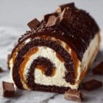 This Triple Chocolate Roll Cake is a decadent dessert featuring a light and fluffy chocolate sponge, layered with a luscious chocolate whipped cream filling and topped with a smooth chocolate ganache. Perfectly balanced and rich, this cake roll is ideal for chocolate lovers seeking an elegant yet approachable treat.