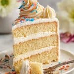 Vanilla Dream Cake is a moist, tender, and flavorful vanilla layer cake made with a combination of water, butter, and vanilla bean for rich aroma. It features a smooth vanilla buttercream frosting topped with optional rainbow sprinkles for a whimsical finish. Perfect for birthdays, celebrations, or any occasion that calls for a classic yet delightful dessert.