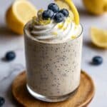 Steel-cut oats have a firmer texture and take longer to soften, so they aren’t ideal for overnight soaking. Quick or rolled oats are your best bet for perfectly creamy vegan lemon poppy seed overnight oats.
