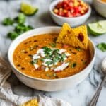 This Vegan Lentil Tortilla Soup Recipe freezes beautifully. Pour portions into freezer-safe containers or bags, leaving some space for expansion. When ready, thaw overnight in the fridge and reheat gently on the stove.
