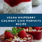 A refreshing and nutritious Vegan Raspberry Coconut Chia Parfait featuring creamy coconut chia pudding layered with smooth raspberry purée and topped with fresh raspberries, coconut flakes, nuts, and mint. This no-bake, gluten-free dessert is perfect for breakfast, snack, or a healthy treat.