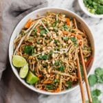 Use tamari or a gluten-free soy sauce alternative in place of regular soy sauce to ensure the entire Vegetable Pad Thai with Rice Noodles Recipe stays free from gluten. Double-check your other ingredients to be certain they don’t contain hidden gluten.