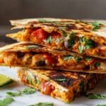 This Veggie Quesadilla recipe is a quick and delicious way to enjoy a flavorful meal packed with sautéed bell peppers, onions, zucchini, corn, and black beans, all melted between two tortillas with a blend of cheddar and mozzarella cheese. Perfect for a nutritious lunch or dinner, it’s easy to prepare and customizable with optional toppings like sour cream, guacamole, or salsa.