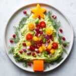 This Whipped Avocado Christmas Tree is a festive and healthy holiday appetizer that combines creamy whipped avocado with vibrant, colorful vegetable decorations. Whipped with lime juice, Greek yogurt, garlic, and fresh cilantro, this fluffy avocado dip is then shaped into a Christmas tree and adorned with cherry tomatoes, bell peppers, pomegranate seeds, feta cheese, and fresh herbs for a visually stunning and flavorful party centerpiece. Perfectly paired with crackers, tortilla chips, or vegetable sticks, it’s an easy-to-make and crowd-pleasing recipe ready in just 20 minutes.