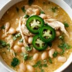 This White Chicken Chili recipe is a comforting and flavorful twist on traditional chili, featuring tender chicken breasts, creamy cannellini beans, and a rich blend of spices simmered in low-sodium chicken broth. Finished with a splash of half and half and topped with Monterey Jack cheese and fresh garnishes, it’s perfect for a cozy dinner that serves a crowd.