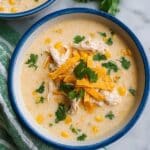 Ladle your White Chicken Chili Soup: Creamy and Savory Ultimate Comfort Food Recipe into bowls and sprinkle with fresh cilantro. Offer optional toppings like shredded cheese, avocado slices, or a dollop of sour cream so everyone can customize their bowl to their liking.
